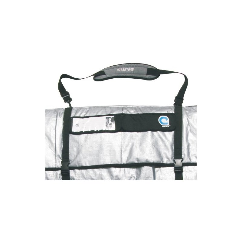 The Superslim multi will protect your surfboards like no other boardbag. The unique Burrito style closure wraps around your boards, for the most compact fit you can get - because just like a burrito, the bag adjusts to fit the size and shape of what's inside. The advantages of this are that you can use the same surfboard bag whether have 1 surfboard, or 2 surfboards - with a customized fit every time! A great alternative to the bulk of standard surfboard coffins which are good while traveling, but are too big to be of use when you are based at home and require storage. The superslim isnt much bigger than a standard single shortboard bag when empty, but it has the advantage of expanding out to accommodate extra surfboards as required. Other benefits of the burrito side opening are having full surfboard access, and the velcro closures also provide an air vent which runs the length of the bag - important to reduce heat buildup and allow air circulation so that wet surfboards dont cook, and can dry faster if put away wet. All up this is a super economical bag that provides good protection for your boards when travelling locally with multiple surfboards. note: for air travel we recommend the Curve Surf "Overstayer" Travel version. other features include: - 2 entry options: unfold for full side access or unzip tail for rear access. - 4x grab handles for easy handling. - 600D polycanvas nose and tail reinforcement. - address label - weights: 6'6 4.6lb / 2.1kg, 7'0 4.85lb / 2.2kg, 7'6 5.1lb / 2.3kg