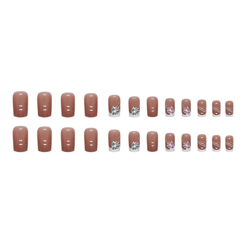 Curvlife Short Press on Nails Acrylic Fake Nails with Design Butterfly Style Full Cover False Nails for Women Reusable Nail Kit with Nail Glue Adhesive Tabs Nail File (butterfly, 24pcs)