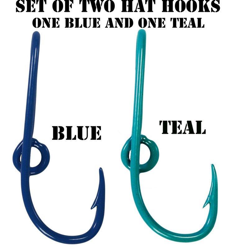 Custom Colored Eagle Claw Hat Fish Hooks for Cap -Set of Two Hat pins- One Blue and One Teal Hat Hook Money/Tie Clasp