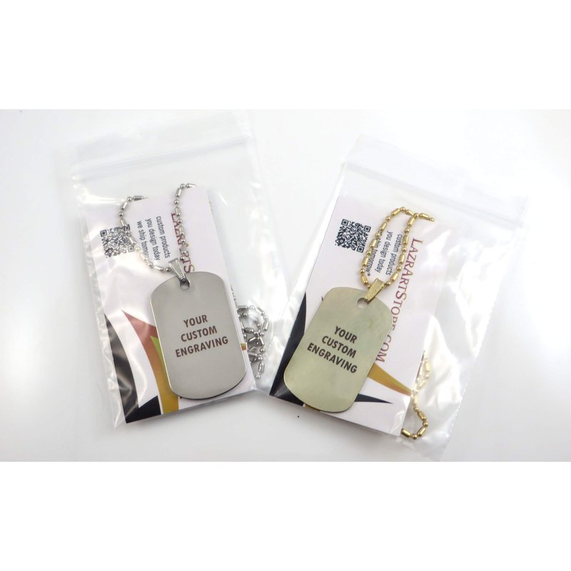 - Custom engraved, high quality tag in either silver or gold tone.