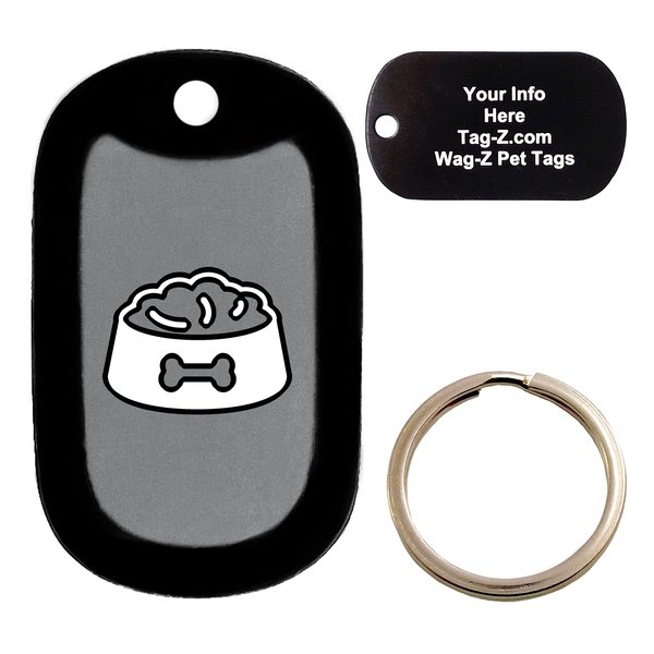 Custom Engraved Pet Tag - Dog Food Bowl with Bone - Gray - Dog Tag - Tag-Z Wag-Z