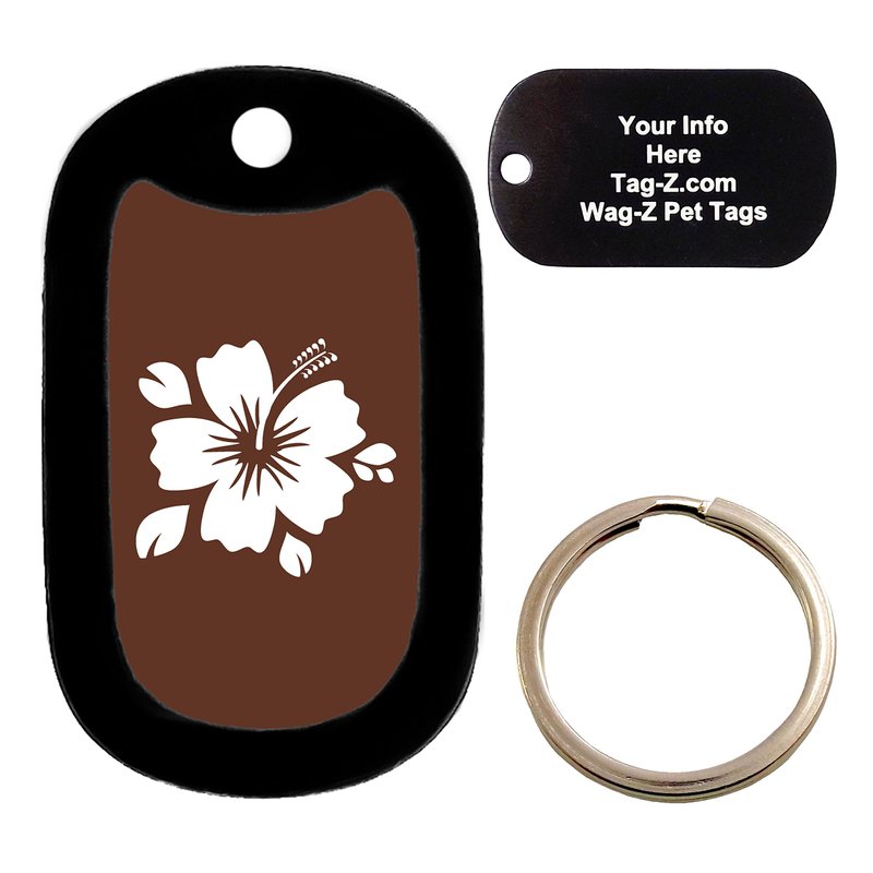 Custom Engraved Pet Tag - Hibiscus - Brown - Dog Tag - Tag-Z Wag-Z
