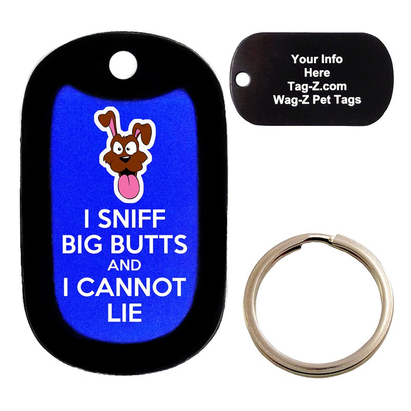 Custom Engraved Pet Tag - I Sniff Big Butts - Blue - Dog Tag - Tag-Z Wag-Z