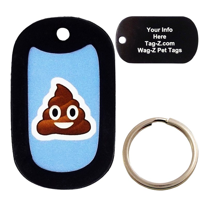 Custom Engraved Pet Tag - Poo Emoji- Cyan - Dog Tag - Tag-Z Wag-Z