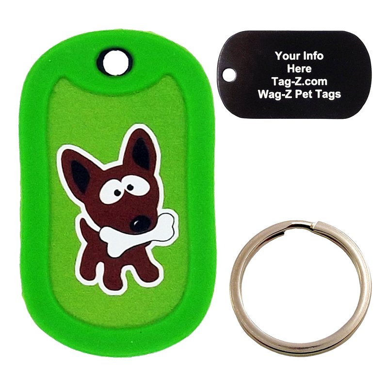 Custom Engraved Pet Tag - Small Dog with Bone - Lime Green - Dog Tag - Tag-Z Wag-Z