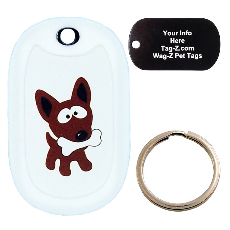 Custom Engraved Pet Tag - Small Dog with Bone - White - Dog Tag - Tag-Z Wag-Z