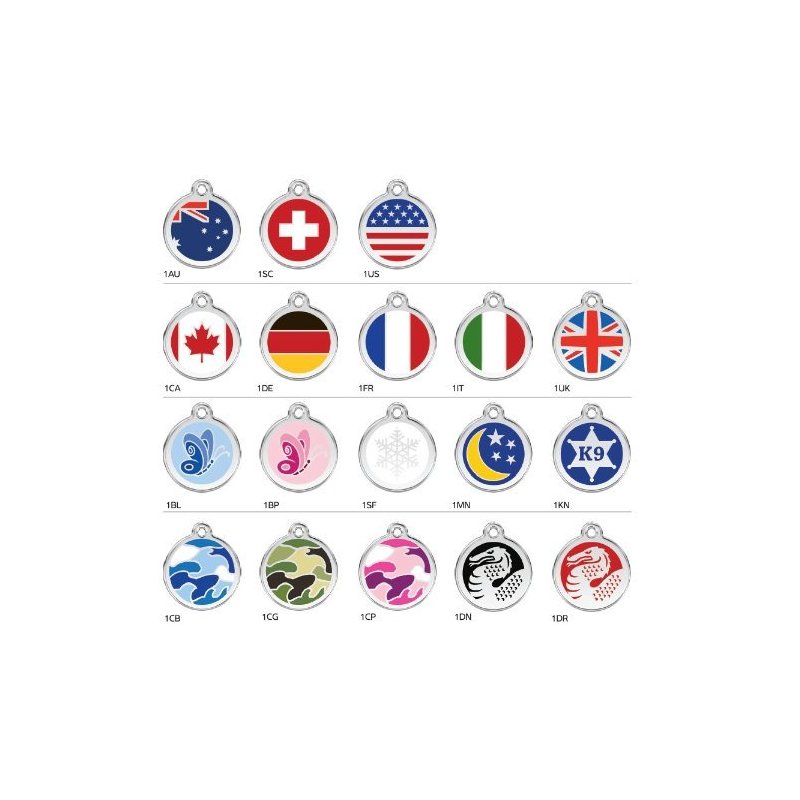 "Our gorgeous Dog ID Tags are made of stainless steel and durable enamel. When it comes to dog tags, your pet deserves the best. Trust us, these tags are polished and hand buffed – they are truly beautiful. Plus, should you wish to have this engraved, engraving is absolutely free (but not required). If you would like to have this item engraved, simply place your order and contact us as soon as possible for engraving requirements and restrictions. If engraving instructions are not received, your order will ship as pictured (without engraving). This upscale dog tag also comes with a stainless steel ring for quick, easy attachment to your dog's collar. Fashionable and safe. The perfect combination. Small - 3/4"", 3 lines of engraving with 12 characters per line. Please note: custom engraved items are not returnable or exchangeable for any reason.