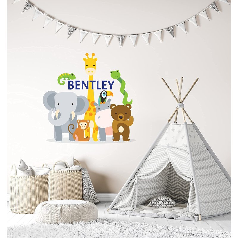 Custom Name Jungle Animals Wall Decal - Baby Safari Zoo Animals Series Theme Wall Art Decal - Wall Decal for Nursery Bedroom playroom Decoration (Wide 20"x20" Height)