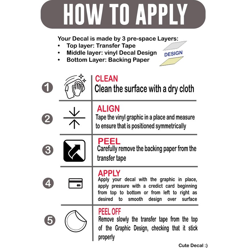 - EASY INSTALLATION - DYI product, precut with precision HD cutting equipment just peel and stick, apply slowly to a flat surface. Simply clean your surface, ensuring it's oil-free, peel off the sticker, and slowly apply it using our transfer film.