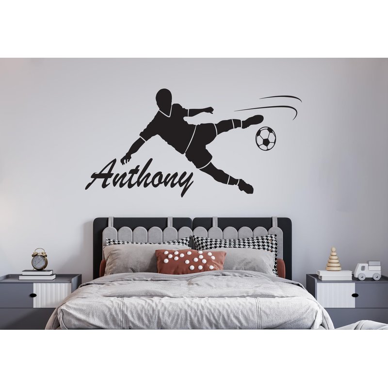 - CUSTOMIZABLE - choose your name and size option and be your own decorator for any room, playroom and add style in minutes, creating magical spaces full of wonderment and imagination. We can also create custom decals to match your kid's unique interests. Show your true love of the game and inspire your next victory with a custom soccer wall decal. Order yours today!