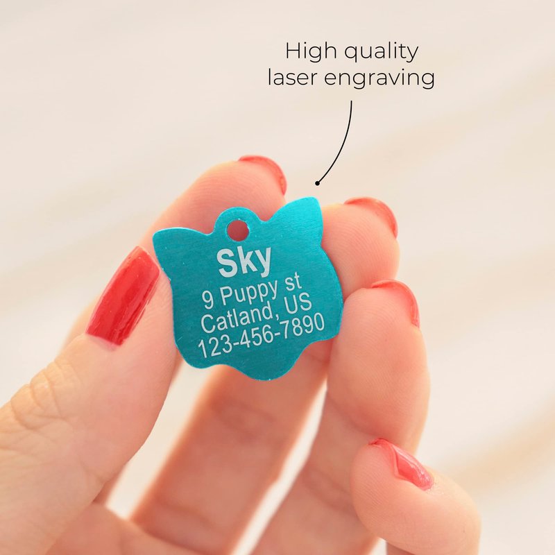 - Stainless Steel Cute Tag: Light weight & Multi-functional. The tag is very light for cats, dogs and any animal. It is not only for collars, it also can be used on harnesses. The tag is made of stainless steel and it will never rust.