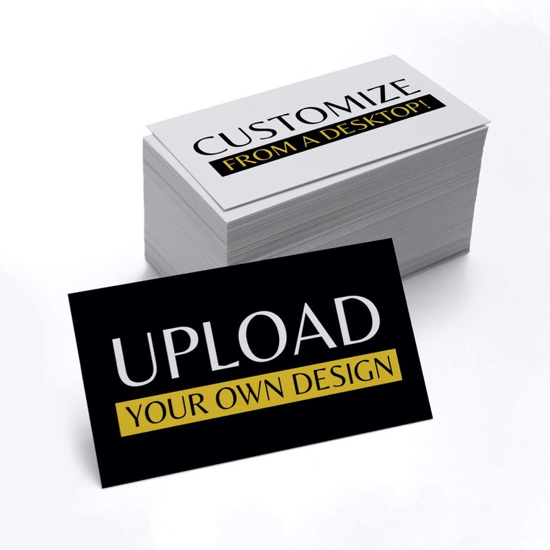 - Custom Business Cards — Upload your own background or designs and customize your business cards with ease. Create your own personalized standard-sized business cards by adding your custom logo or background, write your business name, and add your contact information... Then our printing team will design your card, making it look just like your preview, if not better!