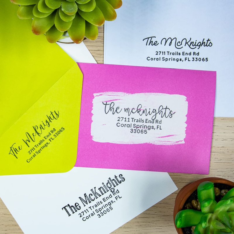 - Self-inking return address stamp customized with your name and address in a variety of designs