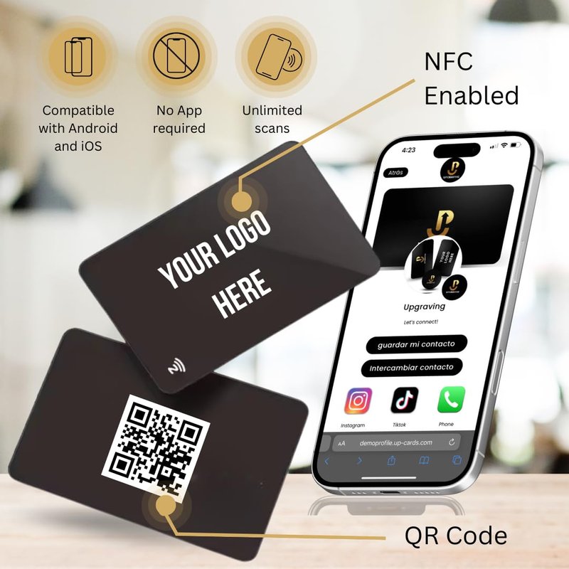 Customizable Black Metal Digital Business Card for Networking - NFC Digital Business Card with QR Code - Tap to Share Technology - No App or Subscription Required (Black)- powered by Upgraving