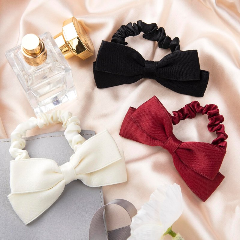 - Package Including: You will get 3pcs bow hair scrunchies for 3 colors(black, red, white), each color has 1pcs. Fresh color and adorable shape will be suitable for daily life and formal decoration.
