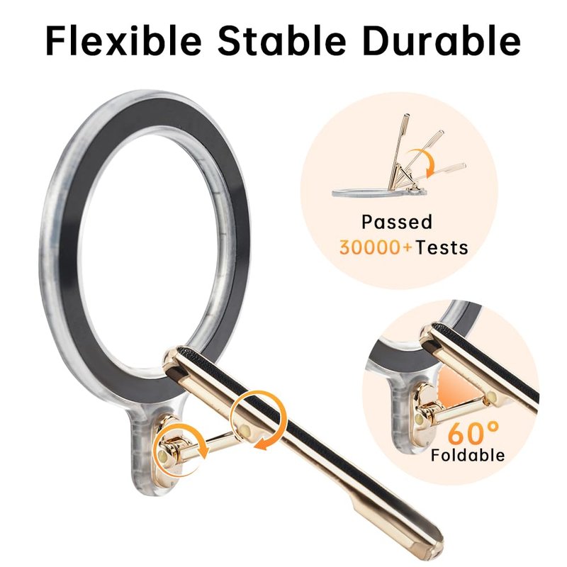 - 【Super Strong Magnetic Grip】Lightweight foldable holder with a strong magnetic grip ensures it sticks tightly to your phone. Note: It needs to be used with a Magsafe enabled iPhone or with an iPhone-compatible magnetic case, or with a thin metal ring (provided) affixed to a non-magnetic case.