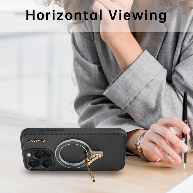 CUSTYPE Phone Grip with Kickstand, Removable Magnetic Phone Grip Holder for Hand for MagSafe,[2-Way Stand] Metal Leather Stand Compatible with iPhone, Samsung, LG, Pixel (Black)