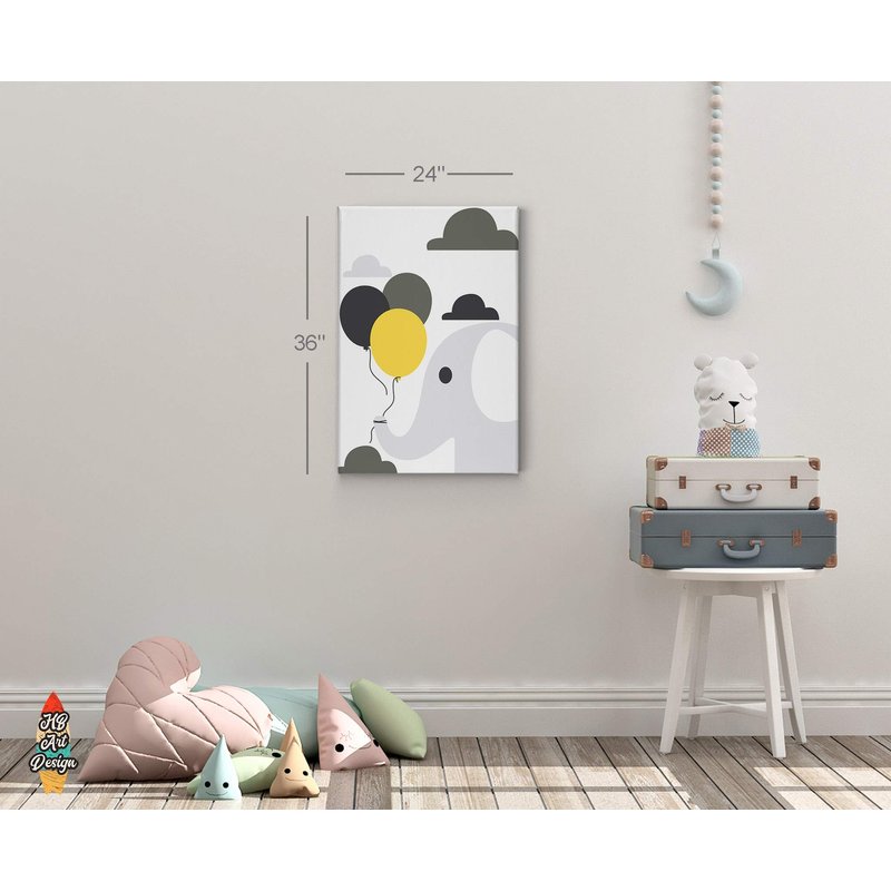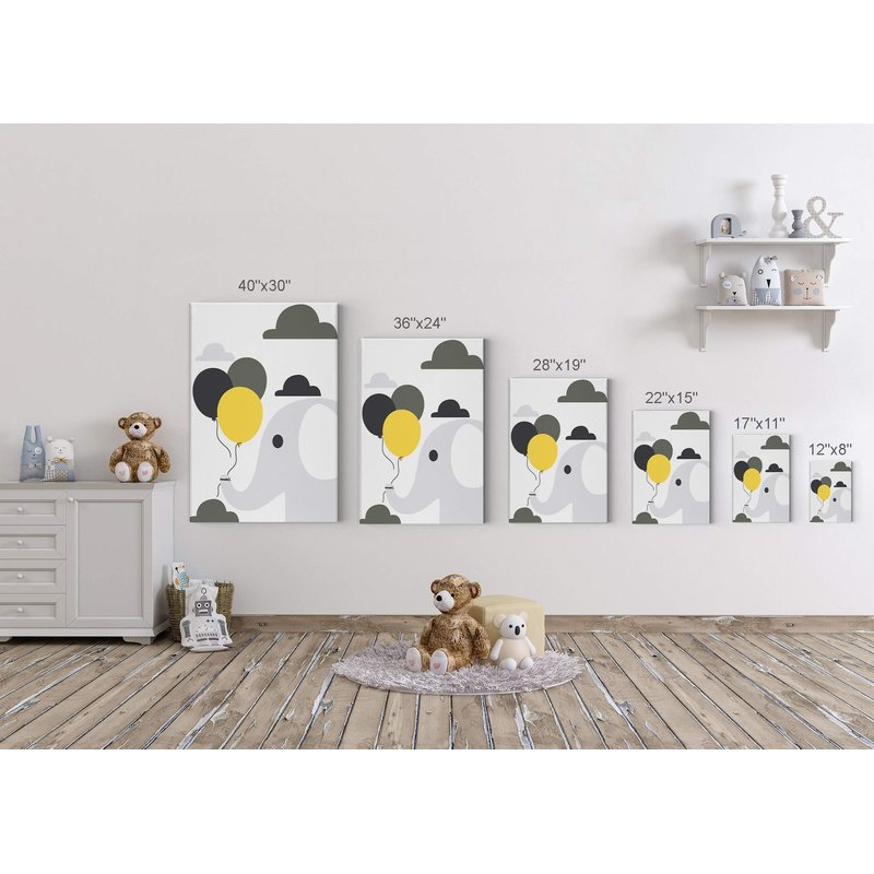 Cute Baby Elephant Nursery Decor Wall Art White Background Canvas Print Baby Girl and Baby Boy Kids Room Decor Nursery Room Decor Framed Ready to Hang-%100 Handmade in The USA-12x8