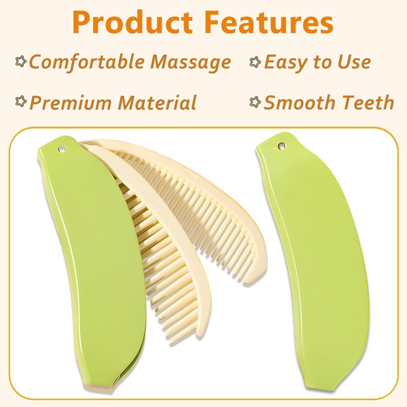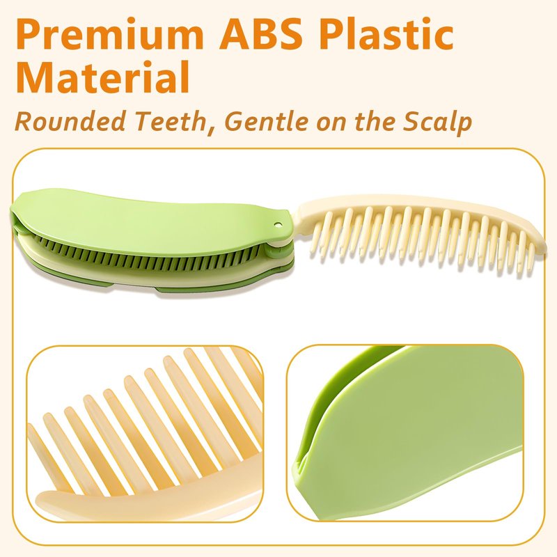 Introducing the charming Banana-Shaped Folding Hair Comb, a travel-friendly grooming essential that combines style with functionality. Crafted from high-quality ABS plastic, this comb is designed to withstand the rigors of daily use while maintaining its appealing look. Its compact and foldable design makes it a perfect fit for your purse or pocket, ensuring you can bring it along on any adventure, from daily commutes to international travels. The comb features a unique 2-in-1 design with single and double row teeth that are smooth and rounded to gently detangle hair without causing breakage or discomfort. Lightweight and easy to handle, it unfolds quickly for instant use whenever you need to tidy up your hair. This versatile tool is not only functional but also easy to maintain; it can be cleaned with water or mild soap, making it an indispensable accessory for maintaining beautiful, neat hair on the go.