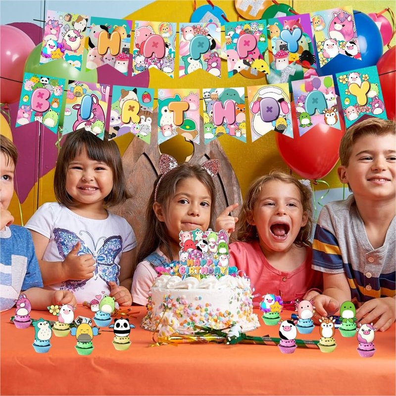 Cute Birthday Decorations, Cute Party Supplies Include Happy Birthday Banner, Cake Topper and Cupcake Toppers, Balloons for Kids Party Decor