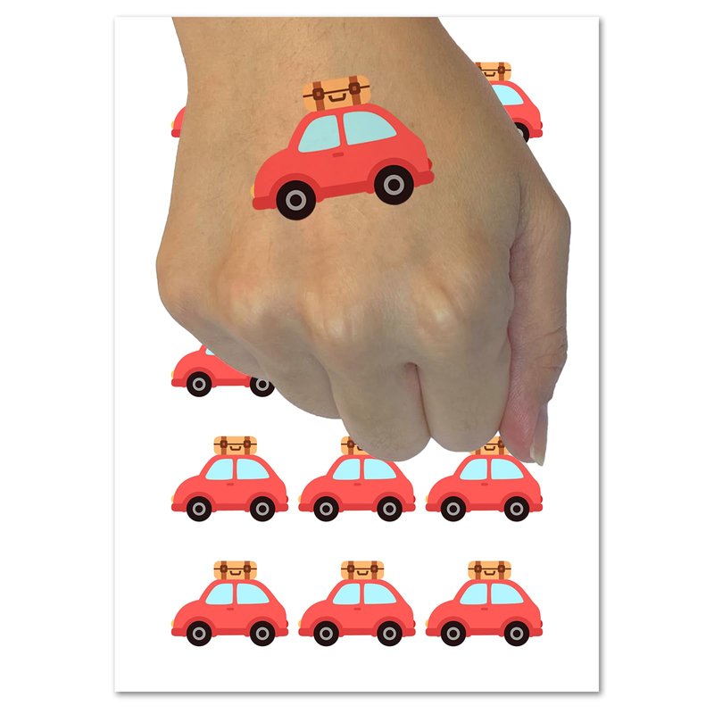 Cute Car with Suitcase Road Trip Travel Temporary Tattoo Water Resistant Fake Body Art Set Collection - 54 1" Tattoos (1 Sheet)