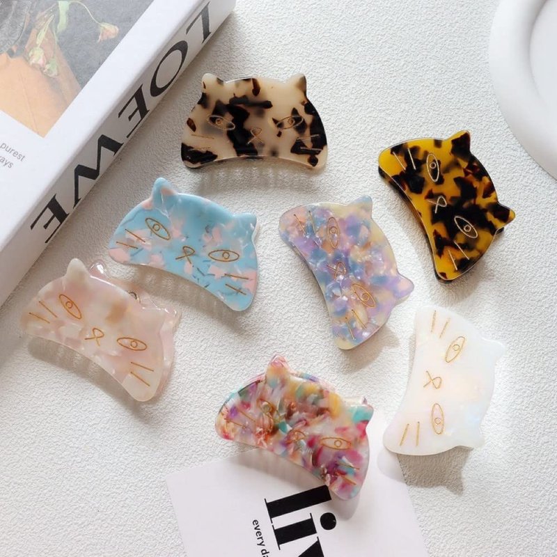 Cute Cat Head Hair Clips,Cellulose Acetate Hair Clips,Small Claw Clips for Girl,Hair Accessories,S12