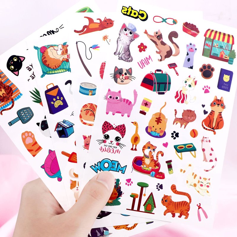 Cute Cat Temporary Tattoos for Kids 690 Pieces Cat Birthday Themed Party Supplies Favors Goodie Bags Decor Sticker Tattoos Valentine's Day Gifts Gift for Boys Girls Classroom Prizes Carnival Rewards