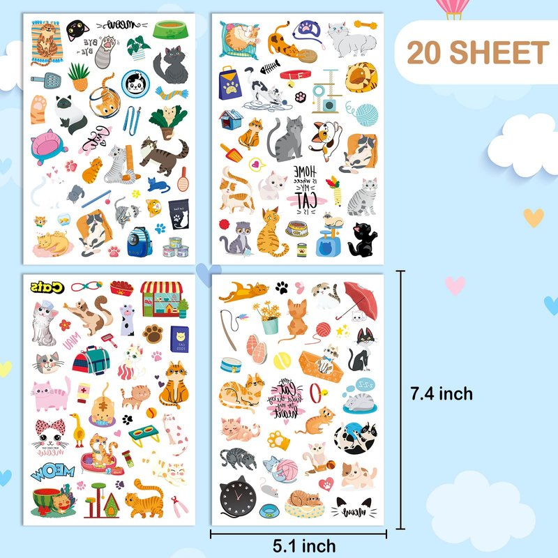 - 1.Cute Cat Tattoos for Kids:Package contains 20 sheets animal theme temporary tattoos for kids, with 4 different sheets, each for 5. Enough quantities to meet of your needs and share with family and friends. Add a touch of colorful to your arms,legs, face and other body parts with our cute cat tattoos.