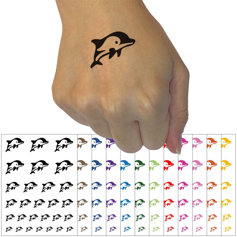Cute Chibi Striped Dolphin Temporary Tattoo Water Resistant Fake Body Art Set Collection - Orange (One Sheet)