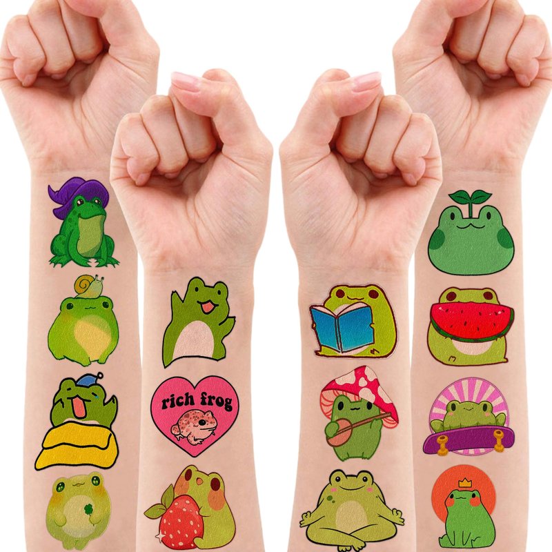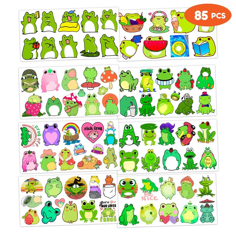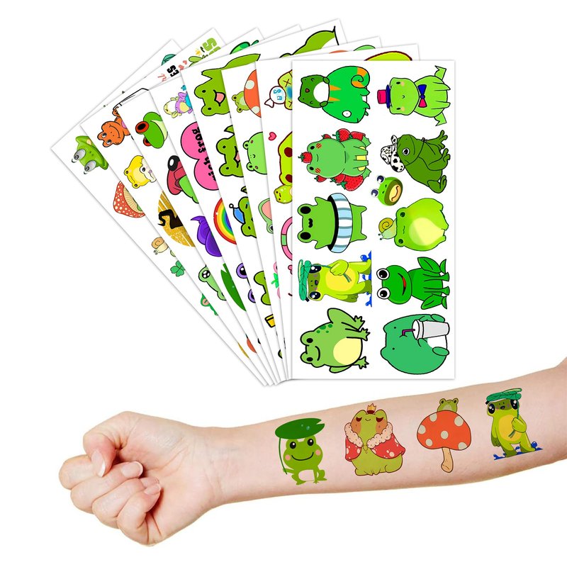 Cute Frog Temporary Tattoos Sticker Theme Themed Birthday Party Supplies Favors Decorations Decor 8 Sheets 85PCS Funny Tattoo Stickers Gifts for Kids Girls Boys Class School Rewards Carnival Christmas