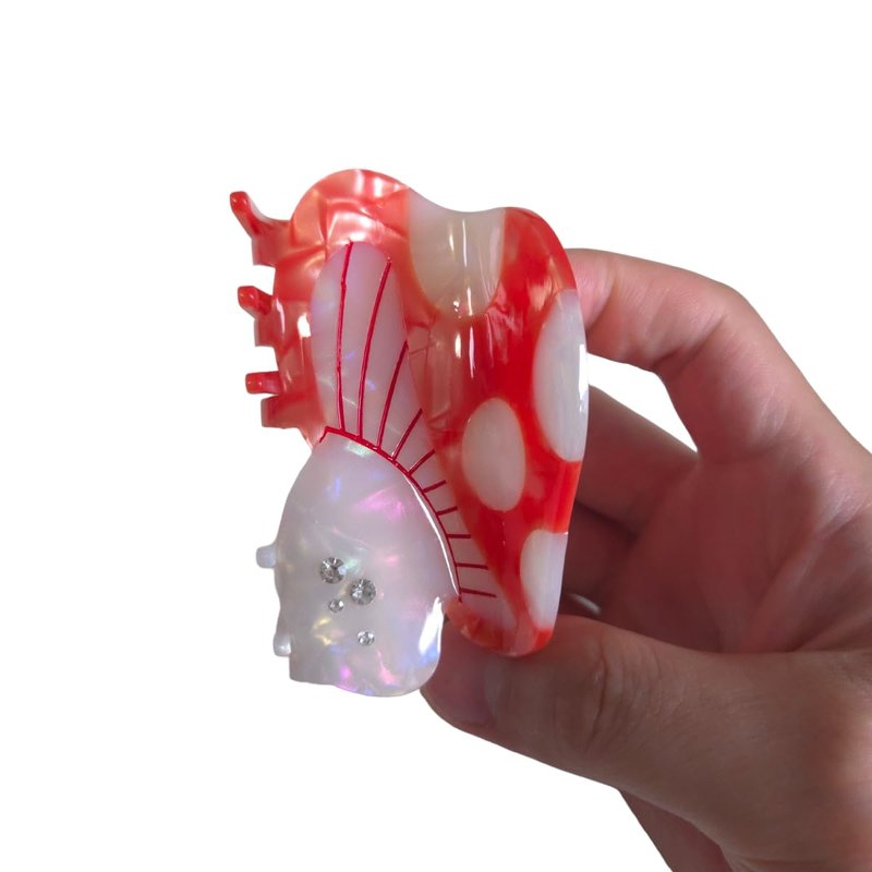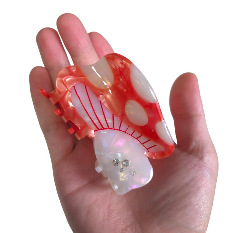 Cute Gemstone Mushroom Hair Clip,Acetate Hair Clip,Small Claw Clip for Women,Red, 1 Count (Pack of 1)