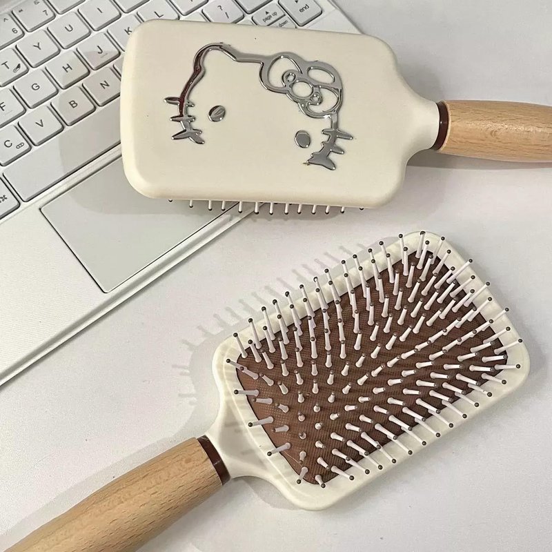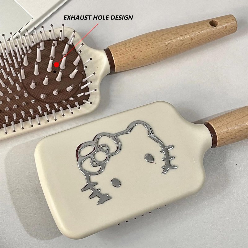 The hair brush has a hole in the handle which is easy to hang on the dressing table, make your dressing table not at a mess and easy to use