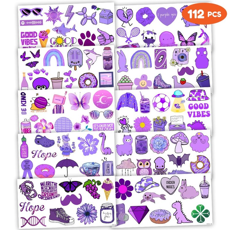 Cute Purple Temporary Tattoos Dark Purple Birthday Party Decorations Favors Supplies Violet Themed Cute Stickers 10 Sheets 112 PCS Gifts for Baby Girls Boys Decor Class School Carnival Christmas