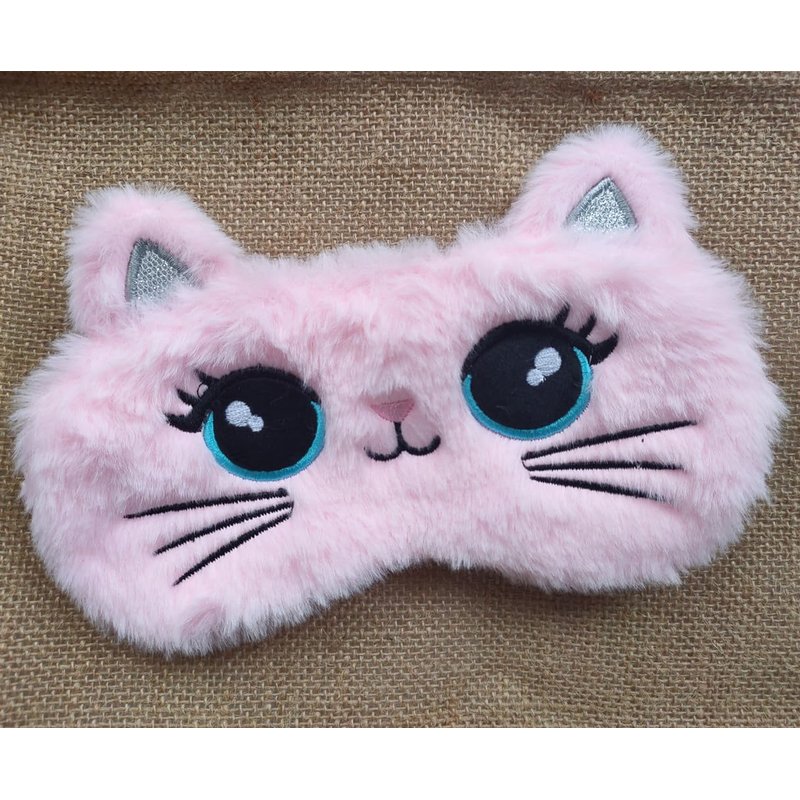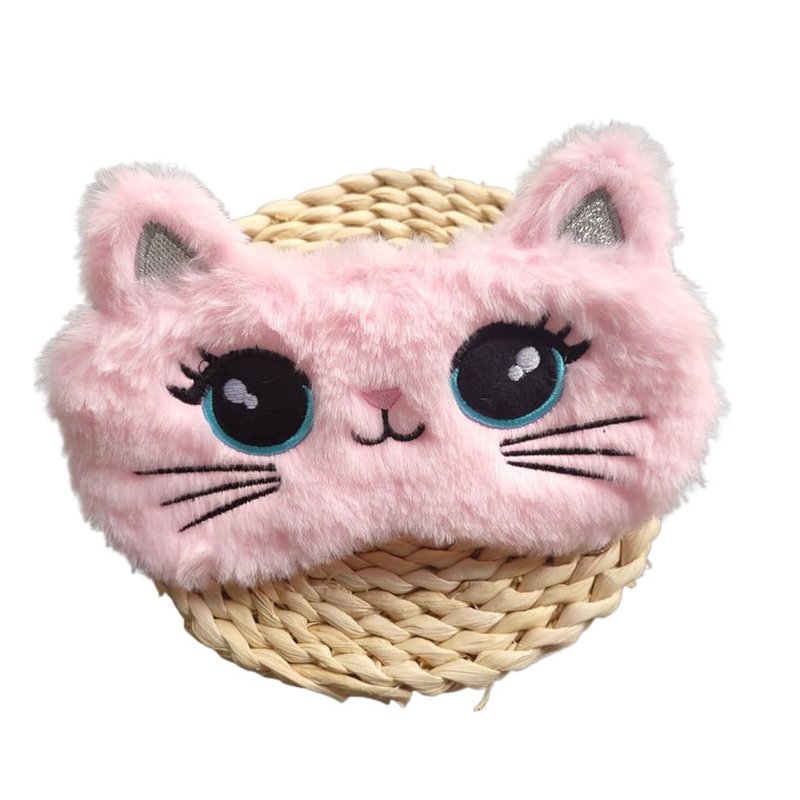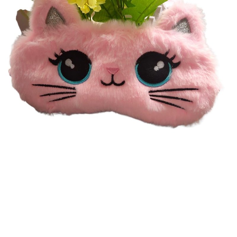 Cute Soft Plush Cat Sleeping Mask for Women Girls, Cute Animal Sleep Eye Cover Mask Eye Funny Blindfold Eyeshade for Night Nap Travel (Pink)