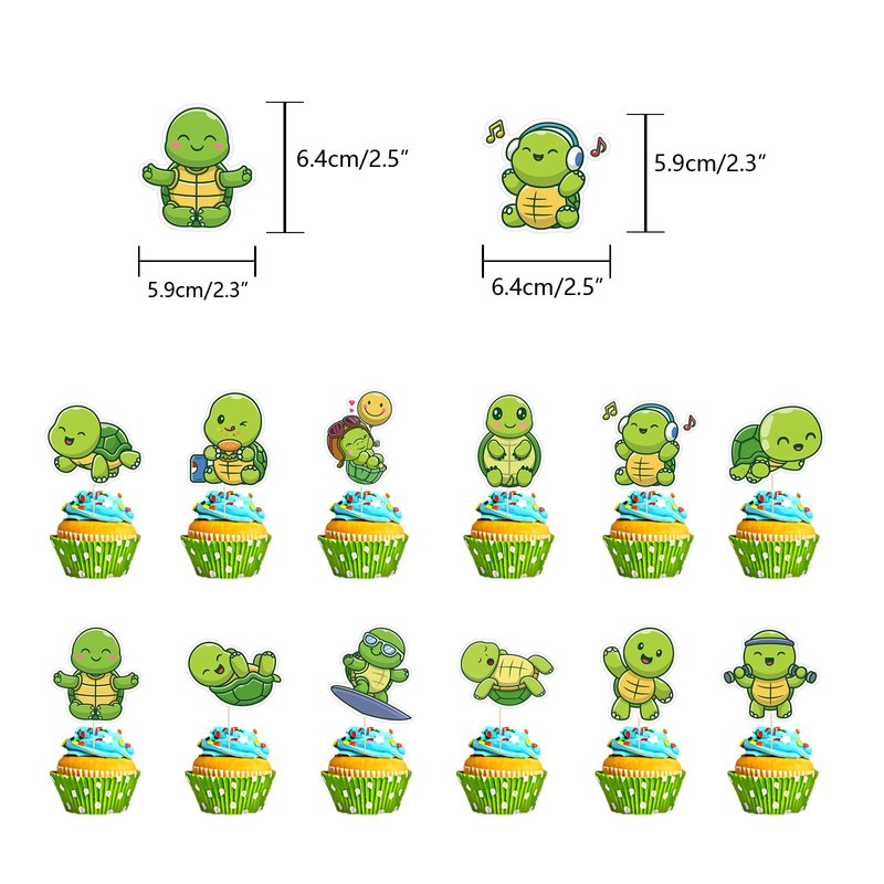 - Little Turtle Party Theme Supplies: You will receive 1set happy birthday banner, 18 pcs turtle balloons, 1 big turtle cake topper and 12 cupcake toppers, Cute and fun turtle party decorations will make your baby's birthday a surprise and a night to remember!