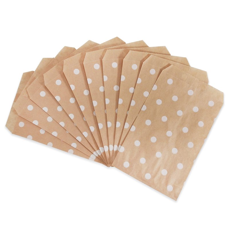 CuteBox Flat Paper White Polka Dot Kraft Gift Bags (4" x 6") for Merchandise, Crafts, Party Favors, Retail, Handmade Goods, Arts and Crafts, Outdoor Events, Holidays, Weddings 200pc