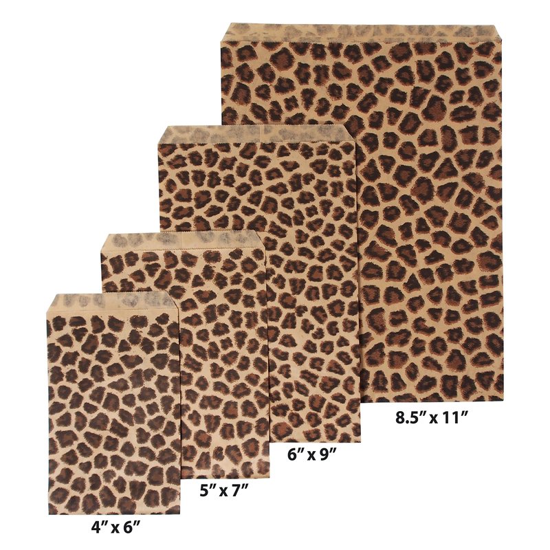 CuteBox Leopard/Cheetah Flat Paper Gift Bags 200 pcs (4" x 6") for Merchandise, Crafts, Party Favors, Tradeshows, Retail, Showcases, Display, Holidays, Animal Themes, Arts and Crafts