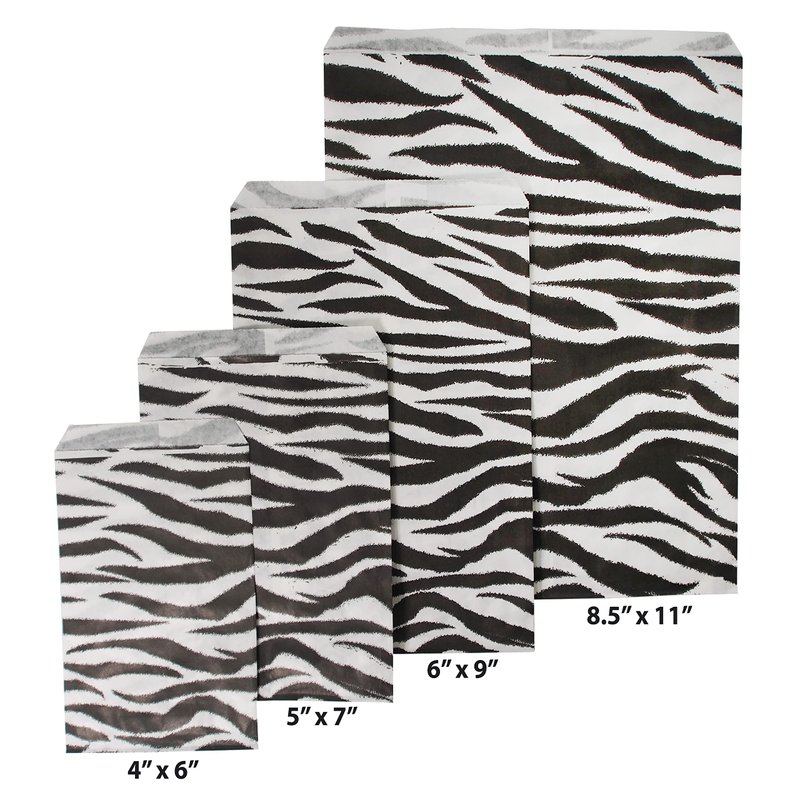 - These animal patterned paper bags are eye-catching and multipurpose! The Zebra and Leopard patterns are sure to hold the attention of your friends and customers.