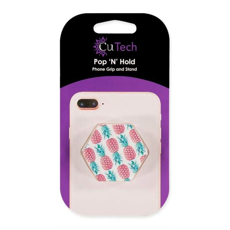 CuTech Pop 'N' Hold Phone Stand & Grip (White-Pineapple)