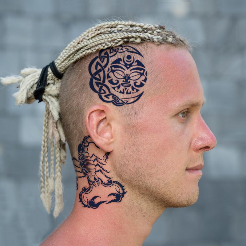 - 【Usage & Occasion】The effect ofTribal Totem Tattoo stickers is close to that of a real tattoo. It can deceive others by sticking it on your body. You can stick it on your arm, back of hand, back, neck and other parts.