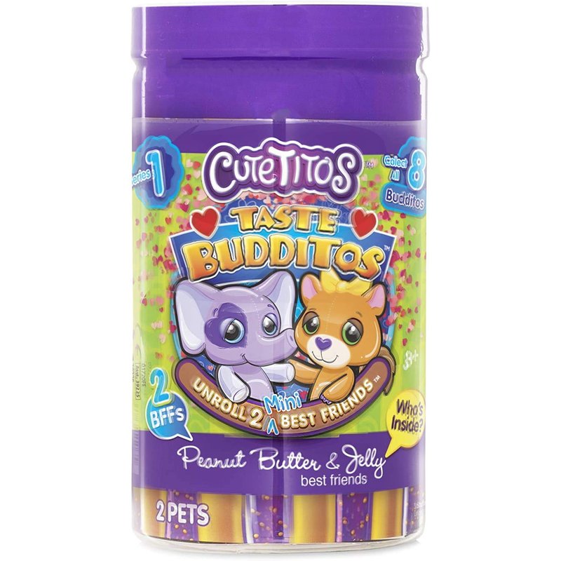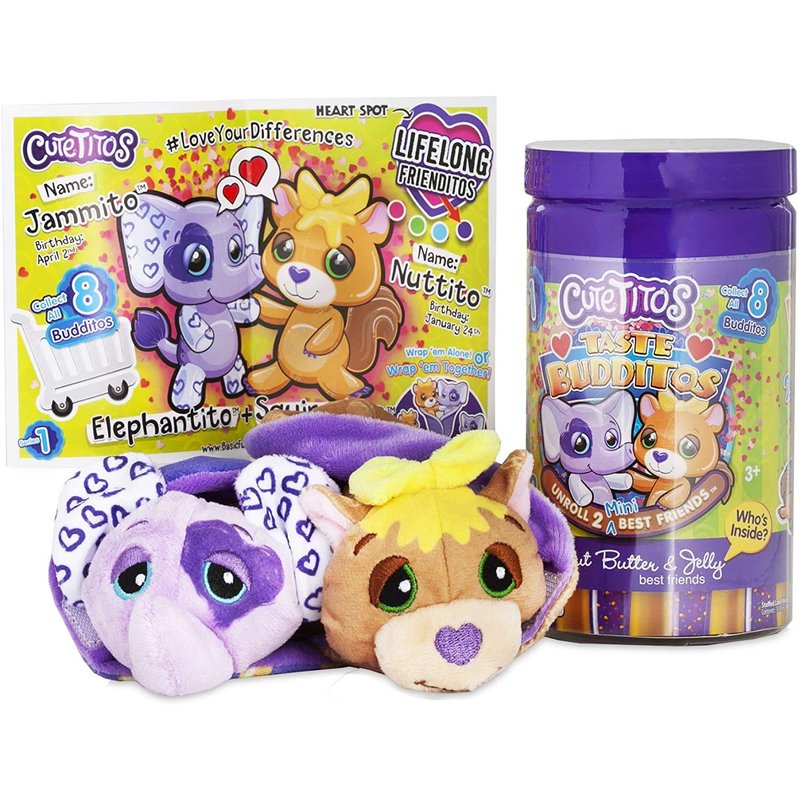 - Packaged in a peanut butter jar, Cutetitos Taste Budditos Peanut Butter & Jelly contains 2 5 inch stuffed animals wrapped in a soft, 2-piece, heart-shaped wrap with a pet collector card. Collect all 8!