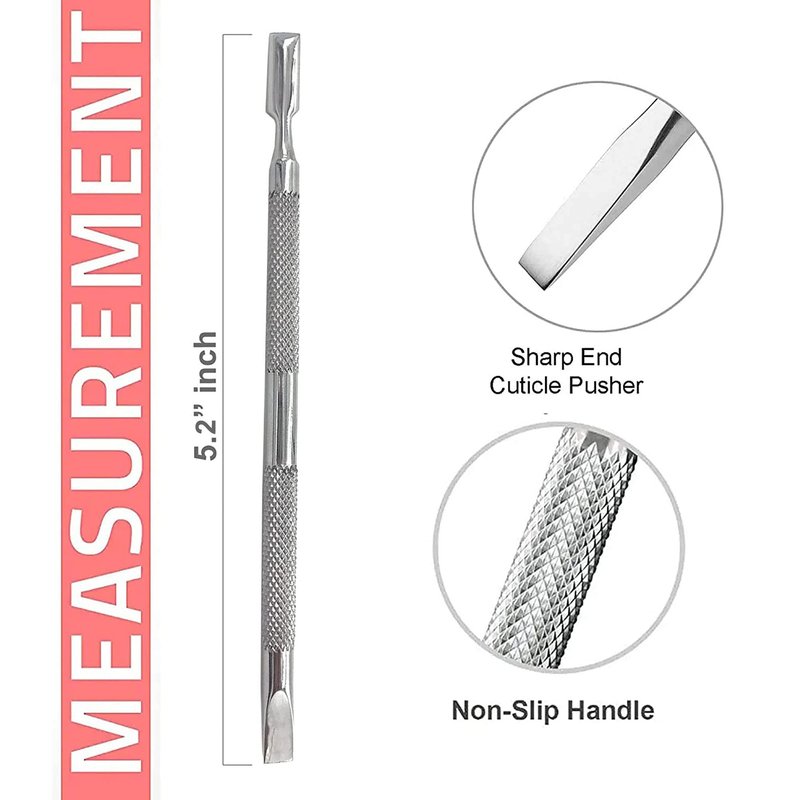 - ✔High Quality Cuticle Pusher Tools - These manicure/pedicure tools are made of professional fine quality stainless steel. The Nail Care Tools are well made with ergonomic design, which help you no more suffer pain; provide you a great home solution to remove Cuticles and delicately treat sensitive areas easily.