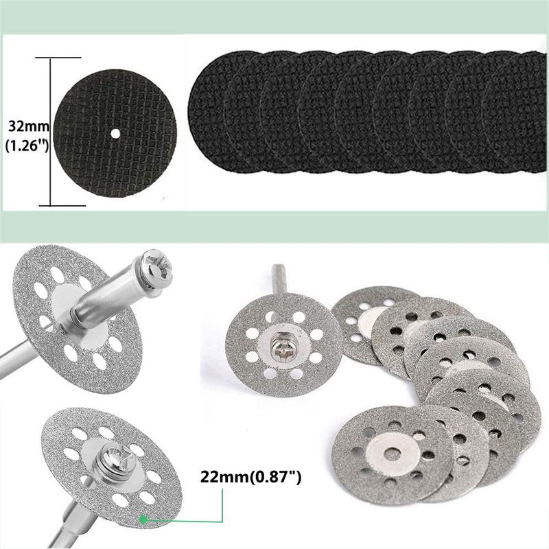 - Diamond Cutting Wheels 10 Pcs-----They are suitable for cutting gems, jade, brick, marble, glass, etc. Matches with 0.30mm Arbor Arbors. The diamond cutting wheels are designed for rotary tools like dremel and replacement EZ545/544 lock cut off wheel. With high cutting efficiency, high durability, stable quality, etc.