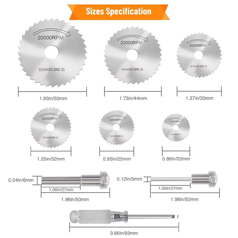 - 1. Widely Used: Set of 6 mini circular saw blades for Drills Rotary Tools, die grinders & air tools, electric power tools, for accurate, fast and precision cutting, which is a good DIY tool for hobby or professional.