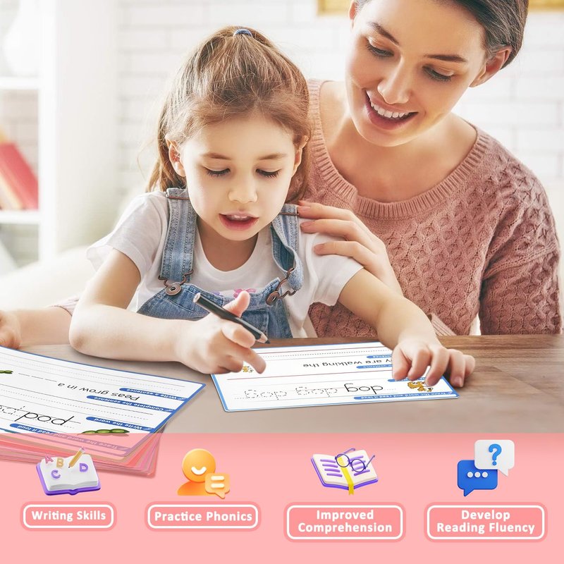 - Phonics-Based Flash Cards for Reading Success: Our phonics flashcards teach essential sound-letter relationships, enabling children to recognize and pronounce CVC words. This makes learning phonics fun, helping children to develop fluency and comprehension skills