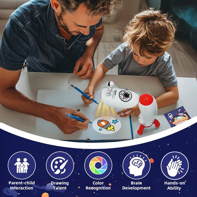 CWYQ Kids Drawing Projector Toys for Boys Girls Ages 3-8 Art Sketch Projector Tracing Drawing Kit with Space Rocket Ship Toys for 3 4 5 6 7 8 Year Old Kids Gifts