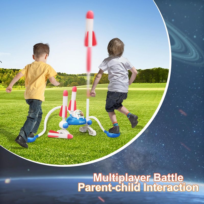 - 【Long-range Launch Up to 100 FT】3 launcher stands with adjustable launch angle; The foam air rockets can fly super high and far into the sky when stepping hard on the stomp pads. The harder you step, the farther it launches. No batteries or extra equipment are required