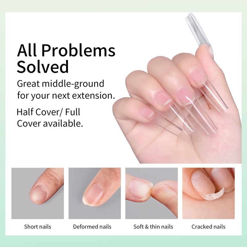 - Easy to Use: Our smooth edge of tips have a more shallow curve, convenient to press on nails beds tightly, without feeling uncomfortable "tightness", keep the color good without separation or exposure, your nails will look more naturally. Pre-shape tips no need file and saving much your time, more sturdy sticking.