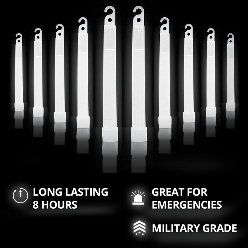 Cyalume Military Grade White Glow Sticks - Premium Bright 6” ChemLight Emergency Glow Sticks with 8 Hour Duration (Bulk Pack of 10 Chem Lights)