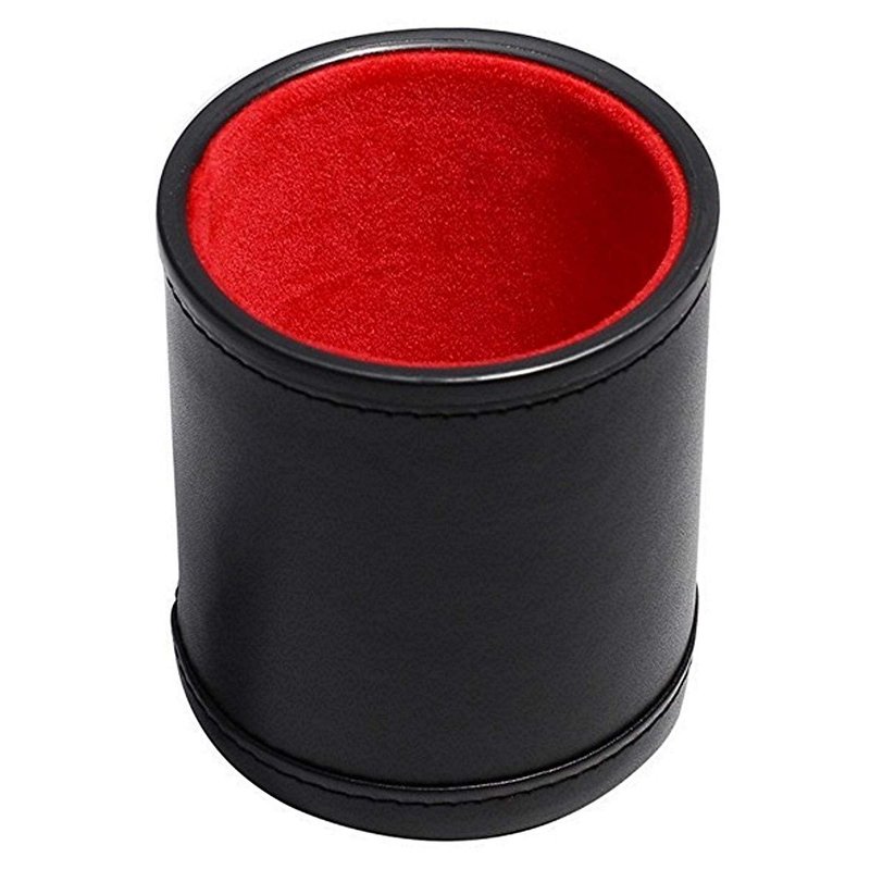 Cyber-Deals Set of Dice Cup Black PU Leather w/Plush Red Felt Lined + Spanish Poker Dice Bone Tone (Gift Boxed)